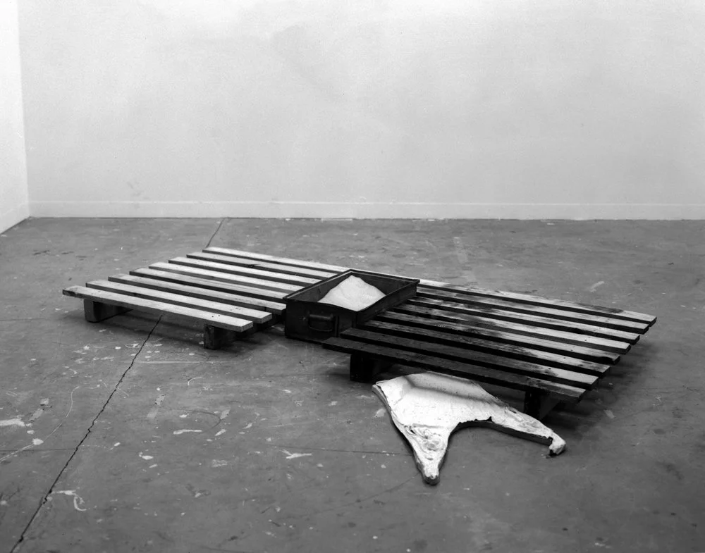 Untitled (2019) Teak, brass screws, latex, 48 x 98 x 75 cm